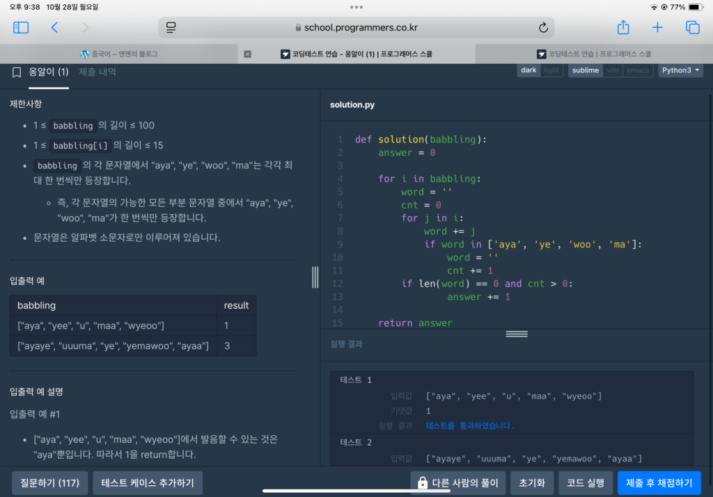 프로그래머스 python 코딩테스트 연습 옹알이(1)